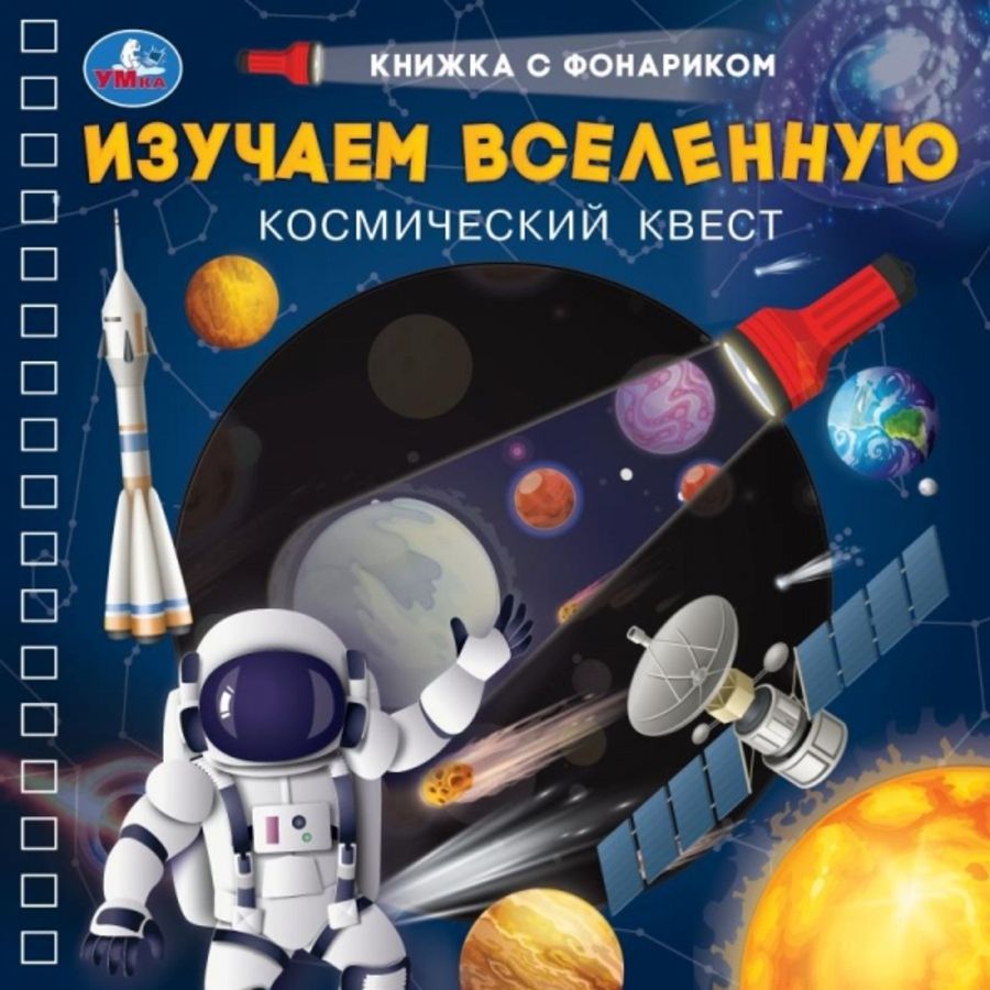 Книжка с фонариком «Космический квест. Изучаем Вселенную» ТМ «УМка» — отличный подарок для маленьких любознаек: - интересный формат - увлекательно и познавательно - красочное оформление Эта удивительная книжка для тех, кто хочет почувствовать себя настоящим сыщиком, кто любит искать и находить. А поможет в поисках чудо-фонарик: просто поместите его между чёрной и цветной страницами и медленно водите, «подсвечивая» спрятанные на рисунке предметы. Такое увлекательное занятие обязательно понравится ребёнку, он с удовольствием проведёт время с этой книгой, а если позвать друзей, то поиски станут ещё интереснее и веселее! Игровые занятия с данным изданием ТМ «УМка» способствуют развитию: - логического мышления - внимания - воображения и фантазии Объём: 16 стр. Формат: 190 х 190 мм. Материал: картон. Рекомендовано детям старшего дошкольного возраста.