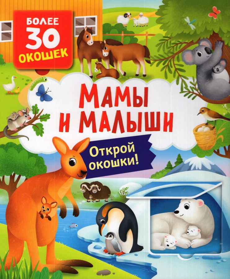 «Книги с окошками - для малышей и малышек» - серия полезных книг для детей. На каждом развороте яркие современные иллюстрации, небольшое задание и окошки, под которыми спрятаны интересные факты! Ребёнок узнает ответы на множество вопросов: Какие детеныши похожи на родителей, а какие - нет? Кто появляется на свет из яйца, а кого мама вынашивает внутри своего тела? Для чего кенгуру и коале сумки?
