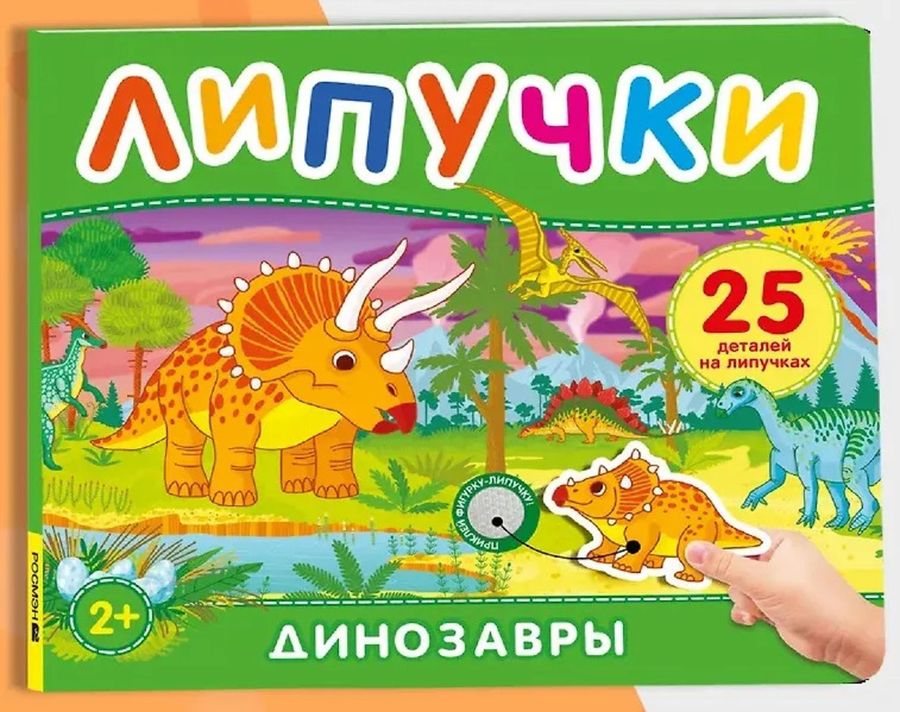 Красочно иллюстрированная книга на картоне с дополнительными элементами на липучках в комплекте. Развитие ребенка в игровой форме: мелкая моторика, память, мышление и речь. Липучки уже приклеены к страничкам! «Динозавры. Книга с липучками»: • 12 страниц из плотного картона со скругленными углами • 25 фигурок на липучках • Большие красочные иллюстрации • Познавательные факты о доисторических ящерах • Увлекательные головоломки и задания на логику В этой книжке-игрушке содержатся не только игры на липучках, но и дополнительные задания для развития интеллекта малыша. Занимаясь вместе со взрослым, ребенок узнает, как выглядел окружающий мир в доисторические времена и как выглядели сами динозавры: птеродактиль, тираннозавр, аллозавр, трипцератопс и многие другие. Фигурки на липучках хранятся в отдельном конверте на оборотной стороне обложки, поэтому книжку-игрушку удобно брать в дорогу и в садик. Для каждого изображения нужно найти свое место на страницах. Издание входит в серию «Книга с липучками» издательства «РОСМЭН»: • Развивашки для детей от 2-х лет • Учитывают психологический и эмоциональный уровень развития ребенка • Помогают познавать мир вокруг и развивать важные навыки Эти книги для детей станут прекрасным подарком девочке и мальчику, и помогут увлечь малыша в путешествии на машине и поезде. Книги с липучками развивают моторику и интеллект ребенка, их рекомендуют психологи и специалисты по раннему развитию малышей.