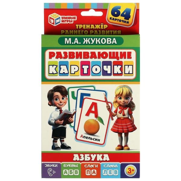 Развивающие карточки «Азбука» ТМ «Умные игры» - это настоящий тренажёр раннего развития: - 64 карточки - крупные красочные изображения - обучение звукам, буквам, чтению слогов и слов - интересные упражнения - методические подсказки для взрослого Этот набор с красочными карточками из плотного картона познакомит ребёнка с буквами русского алфавита, поможет ему запомнить слоги и овладеть первыми навыками чтения. На карточке изображены крупная буква и яркая картинка для лёгкого запоминания. Компактный набор удобно брать с собой - теперь в дороге можно играть и учиться. Занятия с карточками ТМ «Умные игры» расширяют кругозор и развивают: - память - логическое мышление - речь - мелкую моторику - внимание Размер коробки: 110 х 160 х 20 мм. Материал: картон. Рекомендовано детям от 3-х лет.