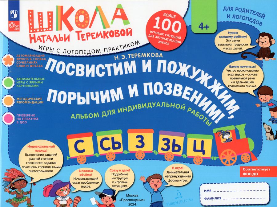 Серия пособий "Школа Натальи Теремковой" - это новый уникальный комплект материалов, разработанный известным логопедом-практиком. Он поможет педагогам организовать занятия с детьми в игровой форме, а родителям - закрепить результат самостоятельно. Игры просты и доступны, разобраться в них сможет любой заинтересованный взрослый. "Школа Натальи Теремковой" включает: разрезные карточки "Дружу со звуками, говорю правильно" и "Различаю звуки, говорю правильно", альбомы "Посвистим и пожужжим, порычим и позвеним", логопедические пазлы "Собирай-ка!" Проработаны все группы звуков, все типы и виды речевых проблем. "Посвистим и пожужжим, порычим и позвеним!" - это комплект логопедических игровых альбомов для автоматизации проблемных звуков в словах, сочетаниях слов и фразах. Посвистим и пожужжим, порычим и позвеним! С, СЬ, З, ЗЬ, Ц. Посвистим и пожужжим, порычим и позвеним! Ш, Ж, Щ, Ч. Посвистим и пожужжим, порычим и позвеним! Л, ЛЬ, Р, РЬ.