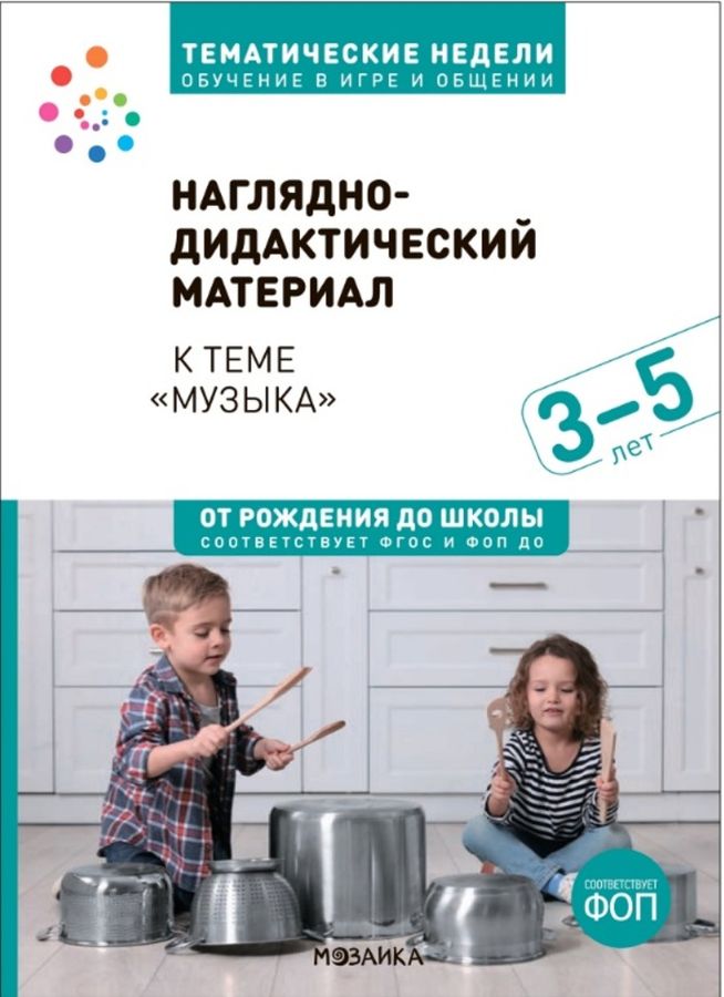 Серия книг «Тематические недели. Обучение в игре и общении» создана коллективом авторов под руководством всемирно известного ученого, научного сотрудника Института развития ребенка Университета Северной Каролины (США) Дебби Краер. Наглядно-дидактический материал, выходящий отдельным изданием, поможет педагогу сделать занятие еще более ярким и веселым. Наглядно-дидактический материал к теме «Музыка» включает: • таблицу «Планирование на неделю»; • текст песенки-приветствия (рус. и англ. язык); • текст песенки «Вместе мы песенки поем» (рус. и англ. язык); • текст песенки «Если шарф в руках твоих...» (рус. и англ. язык); • набор пронумерованных карточек «Инструкция по изготовлению джингл-стика»; • карточки с последовательностями бубенчиков для изготовления джингл-стиков; • плакаты «Новости дня»; • таблицу «Наши любимые песенки»; • картинки для фланелеграфа; • плакаты «Музыканты»; • плакаты с фотографиями поющих людей; • постер с изображением ребенка, стоящего в полный рост; • карточки со словами «Стоп», «Начали»; • плакаты «Люди, отмечающие праздники»; • плакаты «Музыкальные инструменты»; • музыкальное лото; • бланк планирования на день по центрам активности; • бланк планирования на день по режимным моментам; • письмо родителям «Новости нашей группы».