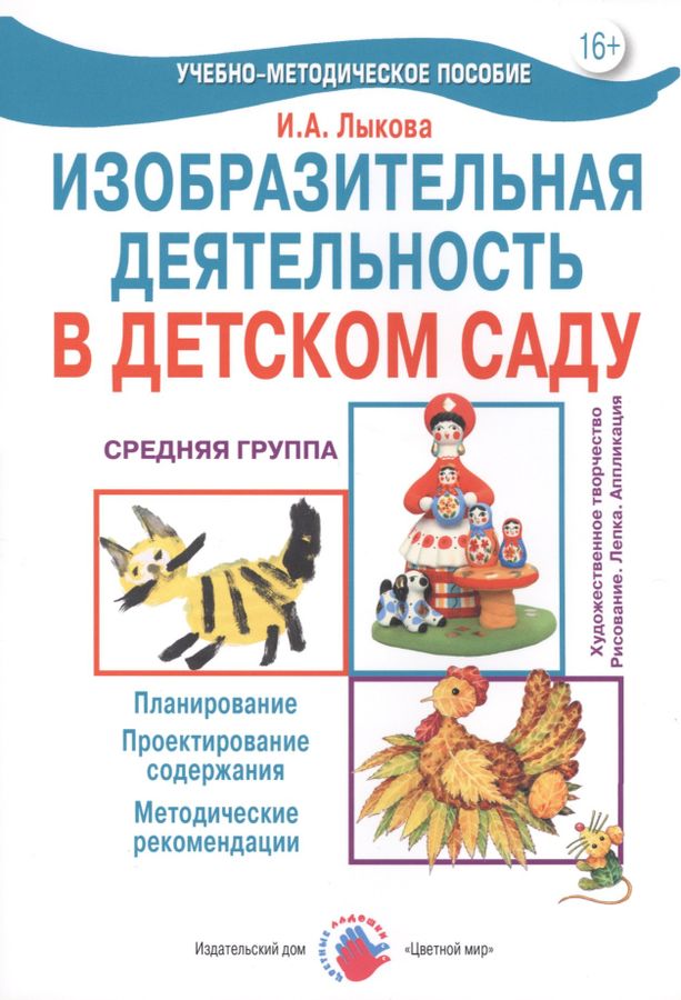 Книга содержит систему занятий лепкой, аппликацией и рисованием в средней группе детского сада (64 конспекта с методическими рекомендациями). Все занятия взаимосвязаны, содержательны и направлены на реализацию задач художественно-творческого развития детей, сформулированных в предисловии. Вместе с тем, они оригинальны, увлекательны как для детей, так и для педагога. Учебно-методическое пособие входит в авторскую программу художественного воспитания, обучения и развития детей дошкольного возраста "Цветные ладошки" (полная структура программы представлена на цветной вкладке в "Приложении"). Книга адресована воспитателям дошкольных учреждений, преподавателям изостудий, гувернёрам, старшим воспитателям и заведующим ГОУ, студентам педагогических колледжей и вузов, а также родителям, интересующимся вопросами художественного воспитания и развития детей дошкольного возраста.