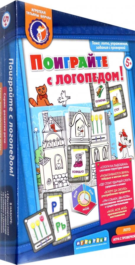 Тема: 17 групп слов с различной слоговой структурой и стечениями согласных звуков; определение ударного слога в слове; твёрдые и мягкие звуки в слове; согласование числительных с существительными, порядковые числительные; род имён существительных; притяжательные местоимения; составление предложений с использование предлогов. В наборе: игровые поля - 4, карточки со словами и картинками - 86, карточки с буквами и схемами - 10, двухсторонние волчки с заданиями - 2 - Будьте добры, позовите врача! - Куда вы звоните, какого грача? - Врача позовите, будьте добры! - Чего вы хотите, какие бобры? - Будьте бобры, позовите грача! - Если бодры, так зачем же врача! В.Баширов Подслушанный разговор, попавший в наш эпиграф, лишний раз доказывает, как важно правильно говорить, внимательно слушать и вовремя позаниматься с логопедом. Работы у последних с каждым годом всё больше, и нам хочется предложить нашим дорогим специалистам пополнить арсенал игровых средств данным пособием. В нём содержится тщательно подобранный речевой и дидактический материал, который может быть использован при работе по следующим темам: - развитие слухового внимания, правильного восприятия речи, - обучение соотносить звучащее слово с картинкой или предметом, - разделение слова на слоги, выбор графической схемы к соответствующему слову; - особенности формирования слоговой структуры слов со стечением согласных; - знакомство с ударением, ударным слогом, ударными гласными; - составление схемы слова с выделением ударного слога, - использование притяжательных местоимений мой, моя, моё; - закрепление понимания и употребления предлогов ; - согласование числительных с существительными; И, конечно: - развитие наглядно-образного мышления, произвольного внимания, памяти, - зрительного и слухового восприятия, воображения, пространственной ориентации; - воспитание усидчивости, любознательности, интереса к занятию; - формирование навыков самоконтроля и самооценки. По секрету, все логопеды очень любят играть. Наши весёлые картинки, привлекательные образы, неожиданные способы проверки ответов превратят трудные уроки в любимые занятия, интересные и полезные. Поиграйте с логопедами!