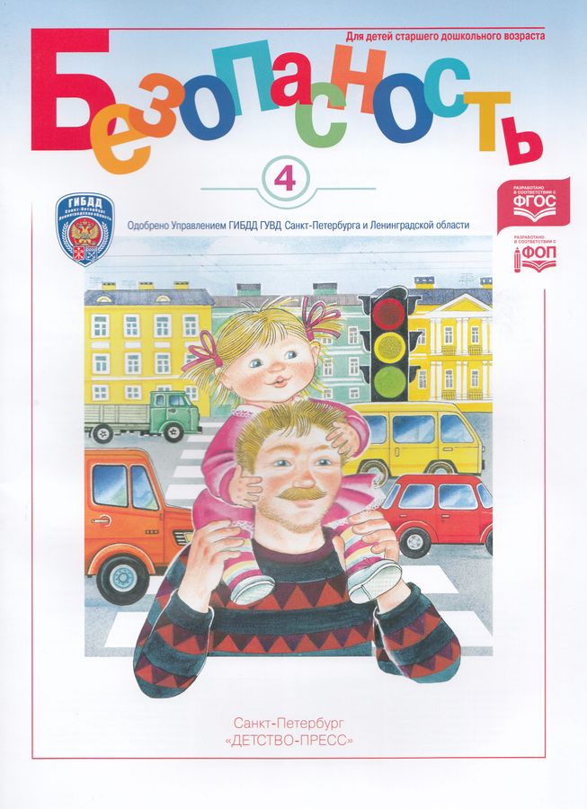 В четвертую, последнюю в цикле «Безопасность», тетрадь вошли игровые задания, в т. ч. настольная игра (разрезной материал), по темам «В городском транспорте», «Дорожные знаки», «Игры во дворе», «Катание на велосипеде (самокате, роликах) в черте города», «Опасные участки на пешеходной части улицы», «Безопасное поведение на улице», «К кому можно обратиться за помощью, если ты потерялся на улице», «Знаешь ли ты свой адрес, телефон и можешь ли объяснить, где живешь?»