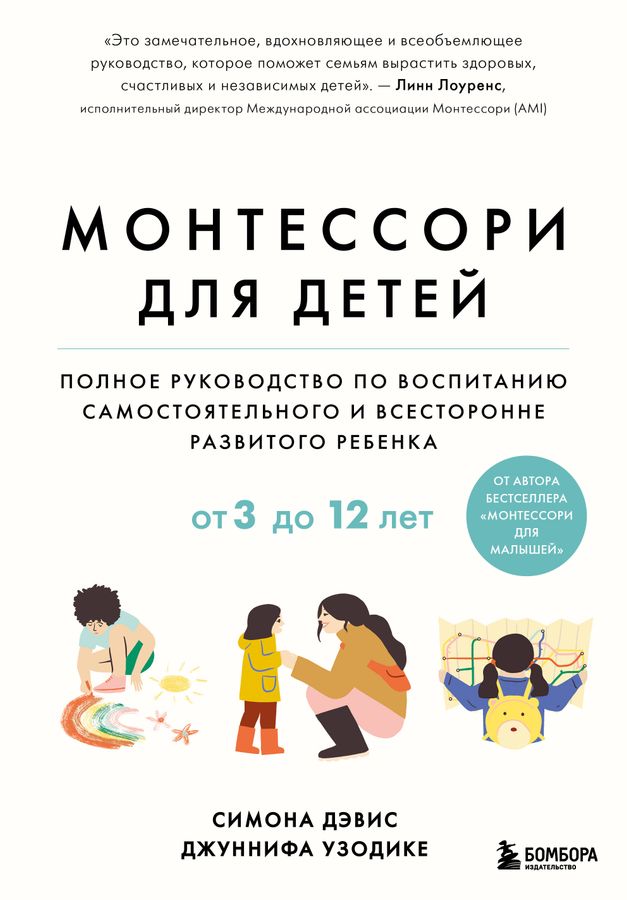 ОТ АВТОРОВ «МОНТЕССОРИ ДЛЯ МАЛЫШЕЙ» И «МОНТЕССОРИ С ПЕРВЫХ ДНЕЙ». Для родителей детей от 3 до 12 лет. Симона Дэвис и Джуннифа Узодике, основательницы известных Монтессори-школ, рассказывают мамам и папам, как, основываясь на принципах Марии Монтессори, воспитать гармоничную и всесторонне развитую личность в любви и заботе. Книга поможет раскрыть весь потенциал вашего ребенка и привить ему моральные ориентиры, семейные ценности и привычку заботы о себе и окружающих. Вы узнаете, как наблюдать за развитием и правильно реагировать на разные ситуации, понимать потребности и особенности детей по мере их взросления, разберетесь, когда стоит помогать, а когда нужно дать ему решать самому. Благодаря этой книге вы: – организуете пространство в доме, чтобы оно способствовало гармоничному развитию и было комфортным для ребенка; – построите доверительные отношения, сможете разрешать конфликты и справляться с протестами детей; – воспитаете независимую ответственную личность, привьете твердые моральные и нравственные принципы; – узнаете, как способствовать развитию математического ума и творческих наклонностей ребенка – сможете говорить с детьми на деликатные и сложные темы; – научите грамотному отношению к деньгам. В конце книги вы найдете таблицу с идеями развивающих занятий в разном возрасте. А также информацию для родителей детей с ограниченными возможностями и нейродивергенцией.