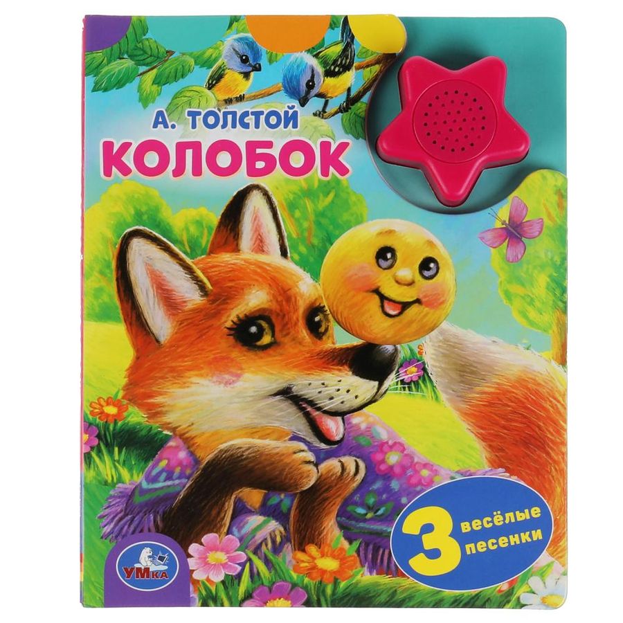 Музыкальная книга «А. Толстой. Колобок» ТМ «УМка» - отличный подарок для малыша: - 1 звуковая кнопка в виде звезды - 3 песенки по мотивам сказки - яркие иллюстрации Ребёнок с удовольствием будет листать плотные страницы, рассматривать красочные картинки, читать вместе с родителями интересную сказку, а также нажимать на кнопку и слушать весёлые песни. Малыш легко освоит включение звука: по нажатию на кнопку включится первая песенка, при втором нажатии выключится, в 3-ий раз - заиграет следующая и т.д. Благодаря компактному формату книгу удобно взять с собой в дорогу. Музыкальная книга ТМ «УМка» развивает: - слуховое восприятие - фантазию - образное мышление - память