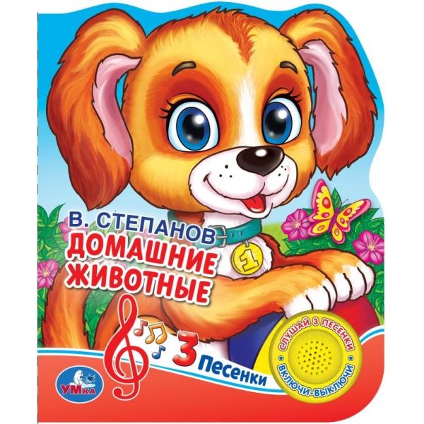 Музыкальная книга «В. Степанов. Домашние животные» ТМ «УМка» — отличный подарок для малыша: - 1 звуковая кнопка - 3 песенки на стихи: «Корова», «Конь», «Овца» - добрые стихи Владимира Степанова - фигурная вырубка - красочные иллюстрации Ребёнок с удовольствием будет листать плотные страницы, рассматривать яркие картинки, нажимать на кнопку и слушать мелодичные песенки. Малыш легко освоит включение звука: по нажатию на кнопку включится первая песенка, при втором нажатии — выключится, в 3-ий раз — заиграет следующая песенка и т.д. Благодаря компактному формату книгу удобно взять с собой в дорогу. Игра с музыкальной книгой ТМ «УМка» развивает: - слуховое восприятие - навык чтения - фантазию - образное мышление - память Объём: 8 стр. Формат: 152 х 185 мм. Материал: пластмасса + картон. Работает от 3-х батареек типа LR1130 (в комплекте). Рекомендовано детям младшего дошкольного возраста.