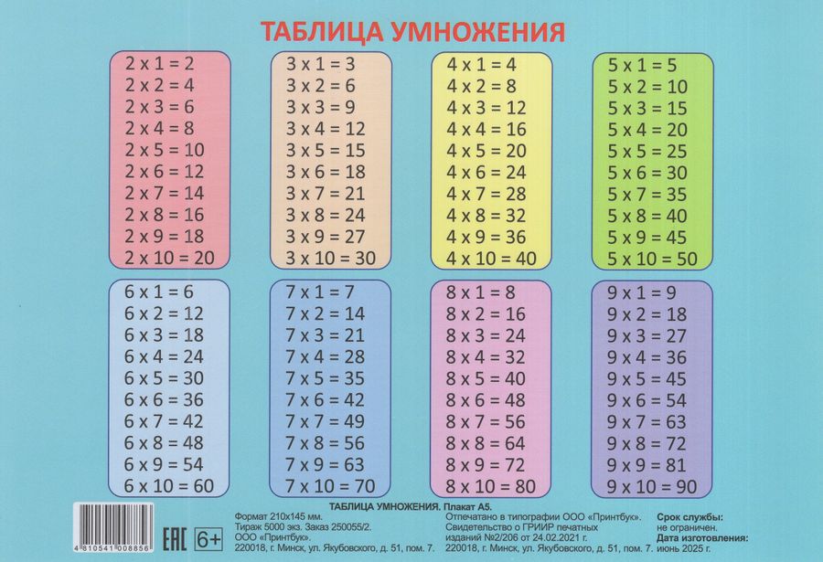 Плакат А5 Таблица умножения Единицы измерения 2025 | Автор не указан