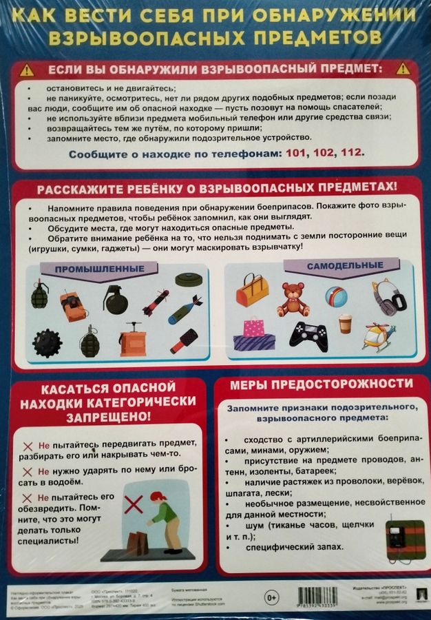 Плакат А3 Как вести себя при обнаружении взрывоопасных предметов 2025 | Автор не указан