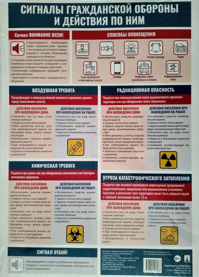 Плакат А3 Сигналы гражданской обороны и действия по ним 2025 | Автор не указан