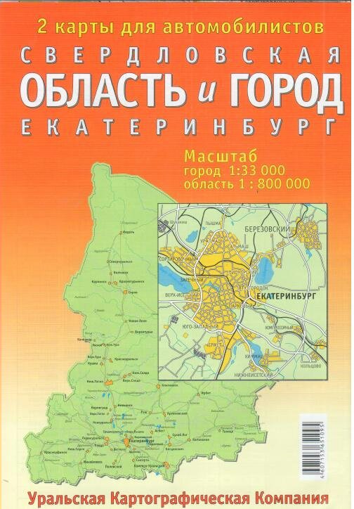 Карта Карта 2 в 1.Свердловская область и город Екатеринбург для автомобилистов складная