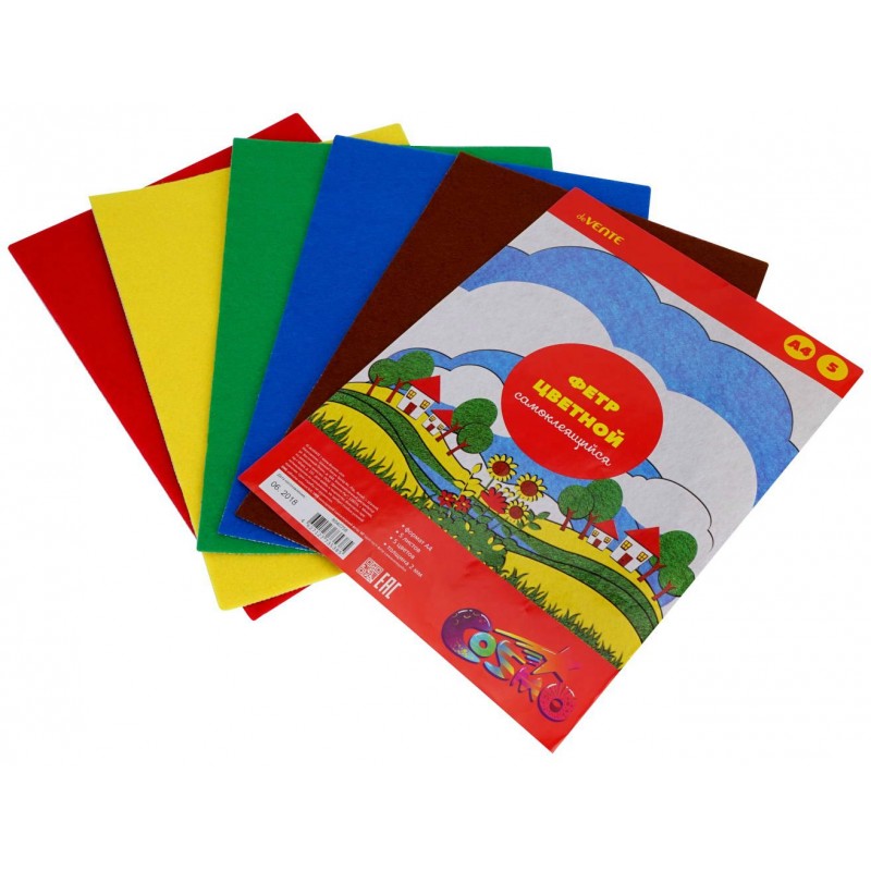 Фетр цветной самоклеящийся А4 "deVENTE. Яркие цвета" 5 цв, 5 л, толщина 2 мм, пластиковый пакет с европодвесом