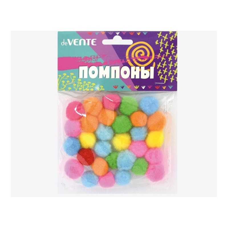 Набор помпонов для творчества "deVENTE" 20 мм с блестками, 25 шт, в пластиковом пакете с блистерным подвесом, цвета ассорти