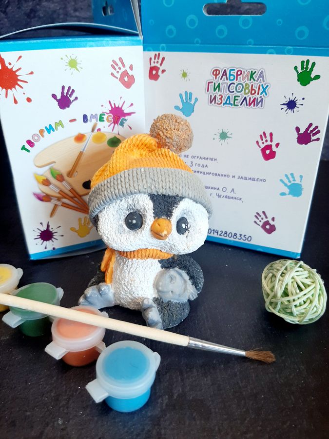 Фигурка для росписи с красками и кистью Пингвин с рыбой в коробке Творим вместе ФК 21-308-1