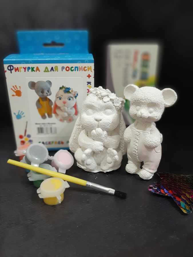 Фигурка для росписи с красками и кистью Милая зайка и мышонок 2 шт в коробке Творим вместе ФК21-214