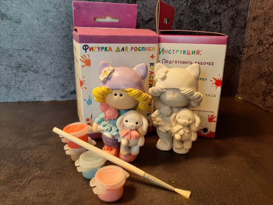 Фигурка для росписи с красками и кистью Девочка с зайкой