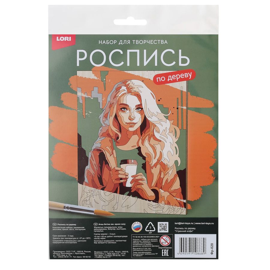 В набор входят: •деревянная заготовка, •краски, кисть, •инструкция.