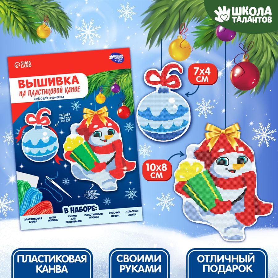 Вышивание крестиком на пластиковой канве Снеговичок с шариком