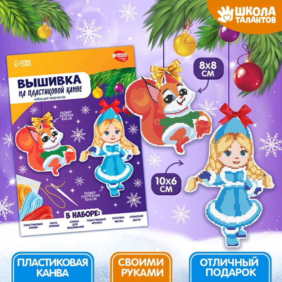 Вышивание крестиком на пластиковой канве Снегурочка и белочка