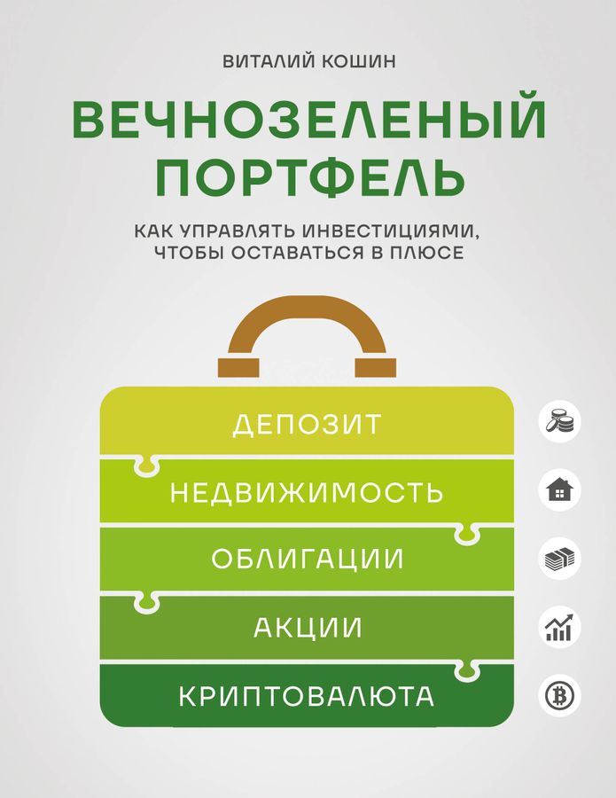 Виталий Кошин: - успешно инвестирует в течение 17 лет; - рост публичного портфеля в 5,5 раз с 2015 года; - входит в Топ-10 финансовых советников по версии международной ассоциации АМИКС; - основатель сайта Fin-plan.org и IT-сервиса для инвесторов Radar; - кандидат экономических наук. Хотите научиться инвестировать так, чтобы ваш капитал рос даже в кризис, а вы при этом оставались спокойны и уверены в завтрашнем дне? Да, это возможно! Виталий Кошин на собственном опыте доказал: стабильный доход и финансовая свобода доступны каждому. В основе книги авторский метод по подбору акций, облигаций, депозитов, недвижимости и криптовалюты. А еще четкий план — какие активы купить прямо сейчас и как их сочетать, чтобы оставаться в зеленой зоне. Благодаря этой книге вы получите: - подробный разбор российского рынка на примерах известных компаний (ПАО «Лукойл», ПАО Сбербанк, ОАО «Роснано» и др.); - готовые алгоритмы выбора акций и облигаций; - инструменты для защиты капитала в кризис. «"Вечнозелёный портфель" — это не просто книга, а заряженный энергией практический путеводитель, который превращает сложный мир инвестиций в понятную и захватывающую дорогу к финансовой свободе. Автор — наш коллега по Ассоциации финансовых консультантов России — делится проверенной методикой вечнозеленого портфеля, конкретными инструкциями по выбору активов, примерами и яркими кейсами из своей практики и практики своих клиентов. Мне импонирует подход автора, который предупреждает о рисках и делает упор на защитные активы и разумность в формировании портфеля. Эта книга вдохнет уверенность, научит дисциплине и покажет, как заставить сложный процент работать на вас каждый день. Рекомендую всем, кто хочет инвестировать осознанно и жить богаче уже сейчас!» — Андрей Паранич, директор Национальной ассоциации специалистов финансового планирования