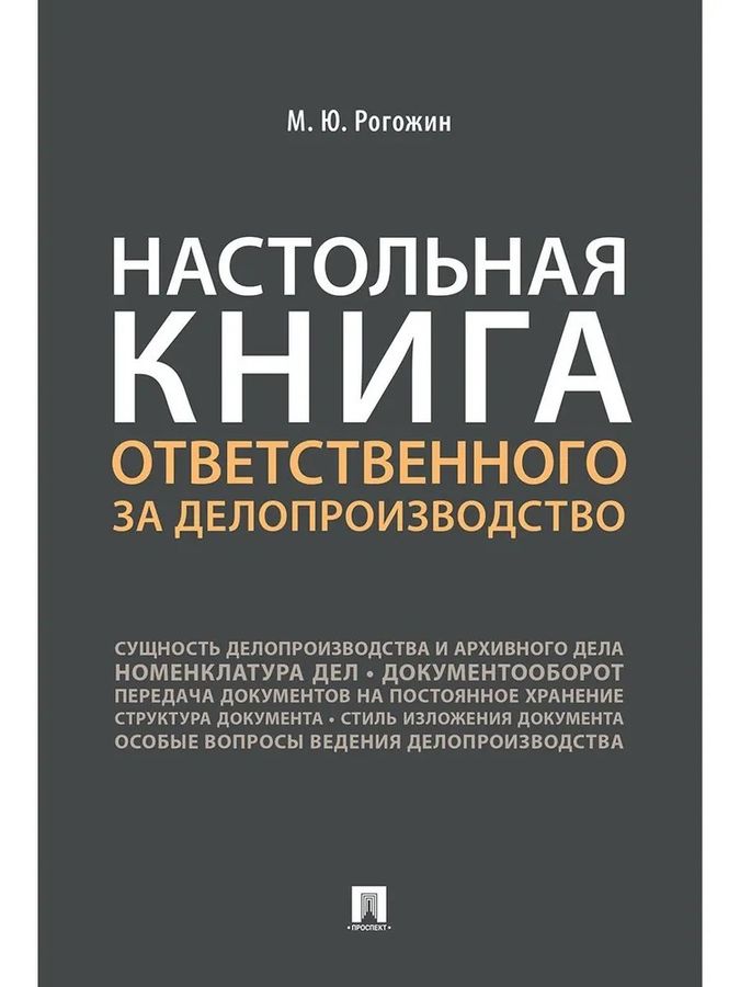 Книга представляет собой краткое систематизированное руководство по работе с документами (документированной информацией) в организации (на предприятии, в учреждении). Она поможет грамотно и быстро сформировать корпоративную систему делопроизводства и архивного дела в любой организации. В содержание включены, кроме прочего, новая примерная инструкция по делопроизводству, учитывающая в том числе требования ГОСТ Р ИСО 7.0.97-2016 к оформлению документов, и новые примерные положения об архиве и экспертной комиссии организации, вступившие в силу в августе текущего года. Книга адресована руководителям организаций, их заместителям, курирующим вопросы корпоративного делопроизводства и архивного дела, персоналу подразделений, ответственных за делопроизводство и архивное дело, обучающимся по специальностям "Документационное обеспечение управления и архивоведение", "Документоведение и архивоведение", а также всем, кто интересуется проблематикой делопроизводства и архивного дела. Комментарий делопроизводство и архивное дело; защита персональных данных; коммерческая тайна; управление документами; документирование; электронная цифровая подпись книги; документационное обеспечение управления; сводная номенклатура дел; справочник по делопроизводству; Рогожин Михаил право Автор на обложке Рогожин Михаил Юрьевич