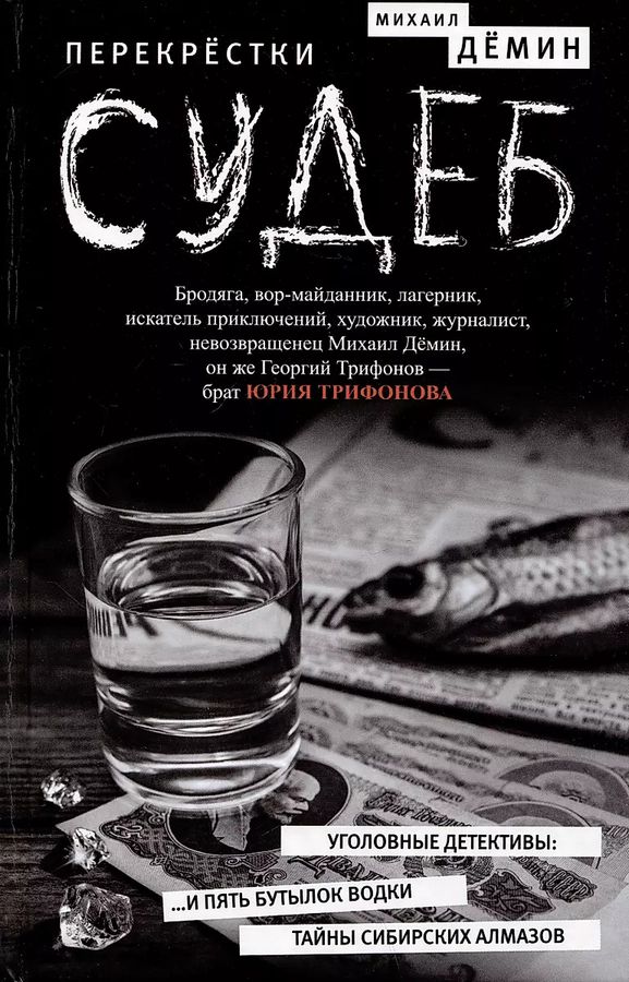 Бродяга, вор-майданник, лагерник, искатель приключений, художник, журналист Михаил Дёмин, он же Георгий Трифонов – брат Юрия Трифонова. В тюрьме Дёмину приходилось скрывать свое истинное происхождение. Старый друг сочинил ему «правильную» биографию: мать – проститутка, отец – профессиональный вор… После освобождения Михаил Дёмин начал печататься сначала в сибирской, затем в центральной прессе, выпустил четыре сборника стихов и книгу прозы. В 1968 году уехал в Париж и стал писателем-невозвращенцем. На Западе опубликовал автобиографическую трилогию «Блатной», «Таежный бродяга», «Рыжий дьявол». Его перу также принадлежит предлагаемая сегодня вам дилогия в уникальном жанре уголовного детектива «Перекрестки судеб». Первая часть «…И пять бутылок водки», ее герои – уголовники, действующие на юге Украины, а вторая – «Тайны сибирских алмазов», в ней мы погрузимся в жестокий мир алмазных приисков и таежных болот Якутии. Ранее эти книги были изданы в России небольшими тиражами лишь в 1990-х годах и почти не известны современному читателю. А писал Дёмин очень увлекательно, с пониманием не только уголовного мира, но и природы и этнографии народов Севера.