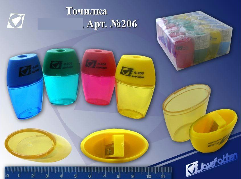 Точилка 1 отверстие пластмассовый, прозрачный, цветной контейнер