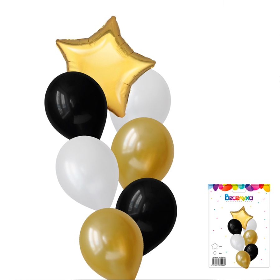 Комплект воздушных шаров "Классика" отлично подойдет для оформления и подарка или в качестве поздравления с любым праздником или событием, а также вовсе без повода. Стильное сочетание черных, золотых и белых шаров сделает декор вашего праздника незабываемым. Для оформления композиции можно использовать как гелий, так и воздух. Тематики для оформления: на свадьбу, день рождения, фотосессию, Новый год, 14 февраля, 8 марта, украшение интерьера. Подойдет как подарок ребенку - сыну или дочке, а также папе/маме, мужчине/женщине коллеге, другу или подруге, парню или девушке, дедушке/бабушке, дяде/тете. Наборы шаров "Веселуха" - это готовое решение для любого поздравления и праздника, экономит ваше время и силы.