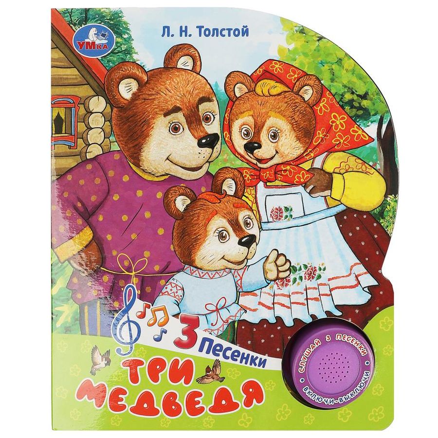 Музыкальная книга «Три медведя» ТМ «УМка» станет прекрасным подарком для малыша: - 1 звуковая кнопка - 3 песенки по мотивам сказки - любимая сказка Л. Н. Толстого - красочные иллюстрации - фигурная вырубка Ребёнок с удовольствием будет листать плотные страницы, рассматривать красочные картинки, вместе с родителями читать известную русскую народную сказку и, конечно, нажимать на кнопку и слушать мелодичные песенки. Малыш легко освоит включение звука: по нажатию на кнопку песенка включится, при втором нажатии выключится, при третьем - заиграет следующая композиция. Благодаря компактному размеру книгу удобно взять с собой в дорогу. Музыкальная книга ТМ «УМка» развивает: - слуховое восприятие - навык чтения - фантазию - образное мышление - память Объём: 8 стр. Формат: 152 х 185 мм. Материал: пластмасса + картон. Работает от 3-х батареек типа LR1130 (в комплекте). Рекомендовано детям младшего дошкольного возраста.
