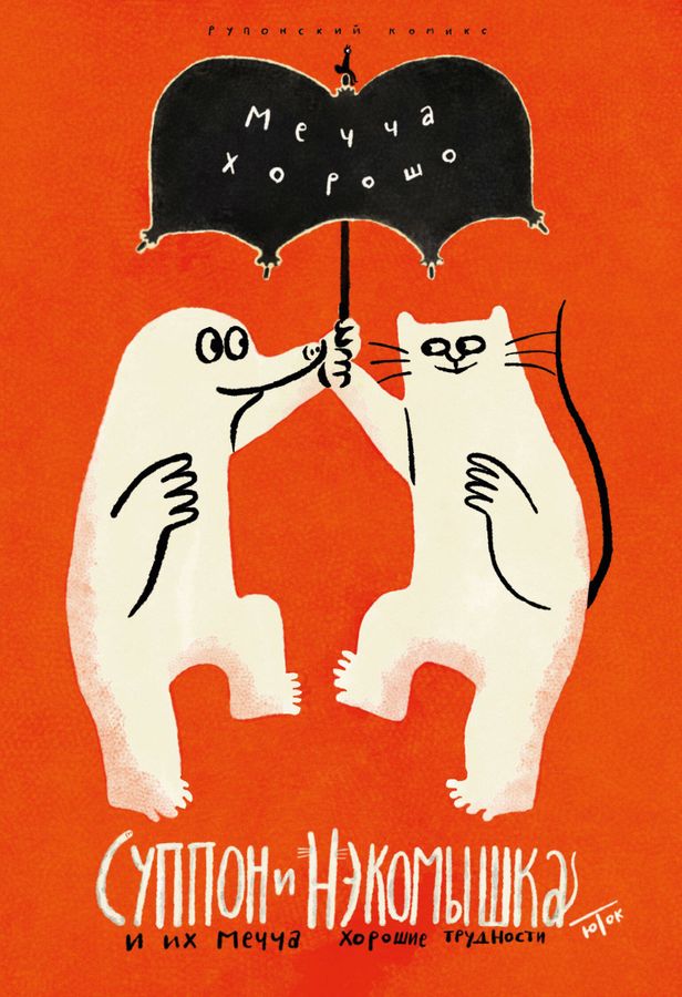Далёкое будущее: Земля оставлена в наследство животным после эмиграции человечества на Марс. Среди новых хозяев планеты — Суппон и Нэкомышка, милые зверюшки, которые восхищаются человеческой жизнью. Однако, их попытки воссоздать быт покинувших планету людей то и частенько сопровождаются небольшими трудностями. Но они не унывают и играючи продолжают — работают на странном заводе мётл, открывают котацу-клуб, устраивают театр когтей, в общем, живут свою лучшую жизнь. А ещё они играючи придумывают свои собственные слова, открывающие новый смысл в дивном новом мире, где нет места распрям, склокам и вражде. «Суппон и Нэкомышка и их мечча хорошие трудности» — уже вторая книга Ютока Исиямы, замечательного художника из Токио. На протяжении многих лет Юток создаёт короткие комиксы об удивительных существах, которые говорят на рупонском языке – поразительном синтезе русского и японского. Будучи большим поклонником российской культуры, Исияма в совершенстве овладел русской речью, что неизменно находит отражение в его очаровательных историях.