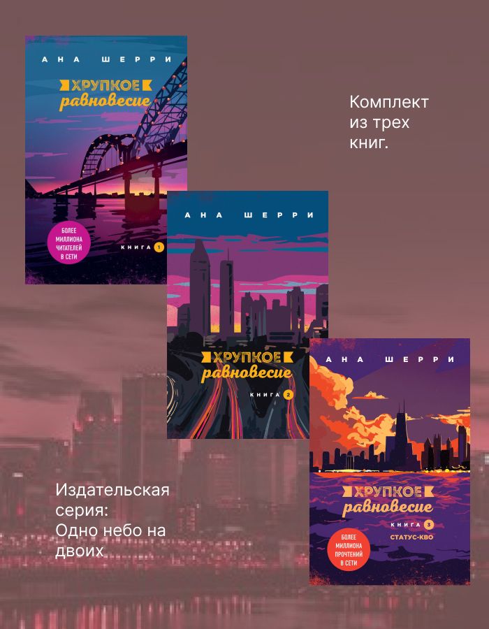 НЕЗАКОННОЕ ПОТРЕБЛЕНИЕ НАРКОТИЧЕСКИХ СРЕДСТВ, ПСИХОТРОПНЫХ ВЕЩЕСТВ, ИХ АНАЛОГОВ ПРИЧИНЯЕТ ВРЕД ЗДОРОВЬЮ, ИХ НЕЗАКОННЫЙ ОБОРОТ ЗАПРЕЩЕН И ВЛЕЧЕТ УСТАНОВЛЕННУЮ ЗАКОНОДАТЕЛЬСТВОМ ОТВЕТСТВЕННОСТЬ. Легендарная трилогия Аны Шерри «Хрупкое равновесие»: комплект из трех книг! Диана Оливер работает парамедиком на «Скорой». Днем она спасает людям жизни, а по вечерам ходит с друзьями по барам или стреляет в тире. Диана была уверена в своем счастливом и благополучном будущем, пока судьба не свела ее с главой итальянской мафии. Девушка еще не догадывается, но совсем скоро ей предстоит стать частью криминального мира, ведь ее талант попадать точно в цель не остался незамеченным. Стефано Висконти — глава клана «Morte Nera». Он привык все держать под контролем. Каждая его сделка — успешная, каждый враг — заклятый. Но для проведения крупных операций ему нужен снайпер, человек с идеальной меткостью, подчиняющийся любым его приказам, преданный ему. И на эту роль идеально подходит хрупкая девушка-парамедик, способная справиться не только с собственными чувствами, но и с любым оружием…