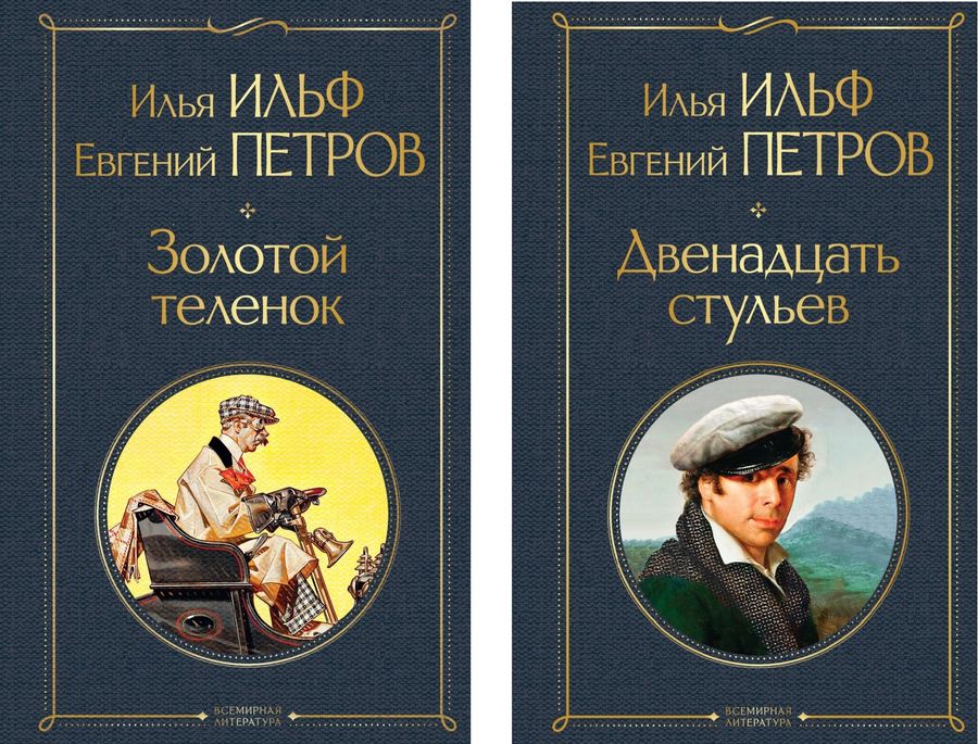 Все приключения Великого комбинатора Остапа Бендера в одном наборе! «Двенадцать стульев» Роман Ильфа и Петрова «Двенадцать стульев» по праву считается эталоном сатиры и юмора. Единодушно любимый всеми читателями, этот роман вошел в «золотой фонд» русской и мировой литературы. Поиск брильянтов мадам Петуховой, спрятанных в одном из стульев мебельного гарнитура, — история, которая и по сей день вызывает искреннюю улыбку. Имена героев — обаятельных авантюристов — стали нарицательными, а сам роман разошелся на цитаты, выдержав сотни успешных переизданий и заслуженно снискав славу неувядающего бестселлера. «Золотой теленок» В погоне за баснословными деньжищами Остап Бендер, возмужавший после опасных приключений «Двенадцати стульев» и не растерявший своего таланта великого комбинатора, расставляет хитроумные сети подпольному миллионеру Корейко вместе со своими компаньонами Паниковским и Шурой Балагановым, вновь оказываясь в вихре приключений, происходящих на фоне картин советской жизни начала 1930-х годов.