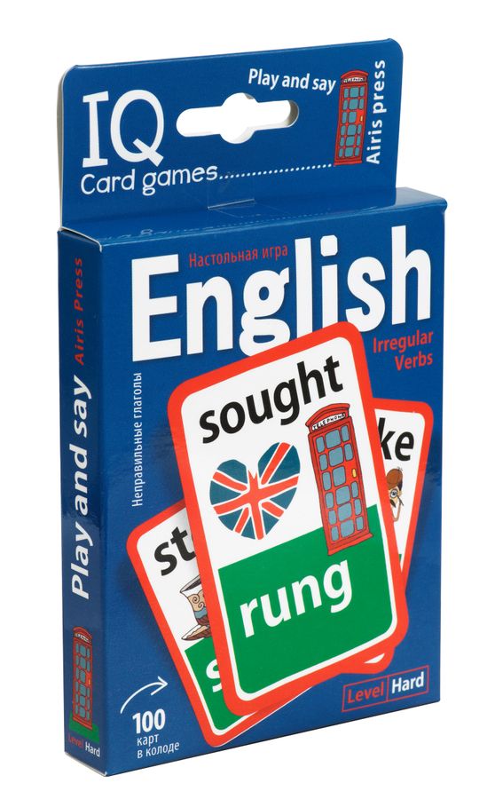 Взгляните на изучение глаголов по-новому вместе с "English Irregular Verbs". Это набор увлекательных игр для запоминания английских неправильных глаголов и причастий. Он поможет избежать нудной зубрежки и разнообразить учебный процесс. English Irregular Verbs - это целых 6 необычных весёлых игр в слова для 2-15 человек, с их помощью английские глаголы запоминаются легко и быстро. Выкладывайте карты на стол, соединяя разные формы глаголов, рассказывайте короткие истории и проверяйте знания друг друга. Игры помогают запомнить правописание и расширить лексический запас. Они эффективно дополняют школьную программу и помогают в игровой форме закрепить пройденный материал. "Гадание на глаголах", "Пантомима", "Счастливая тройка" и ещё 3 интересных игры. В English Irregular Verbs можно играть всей учебной группой прямо на занятиях или дома. Игра разработана специально для учителей английского языка, школьников и родителей. + 100 карт в колоде. + 6 интересных игр. + Запоминающиеся образы Число игроков от 2 до 15. Возраст 9+. Рекомендуемое время игры 25 минут.