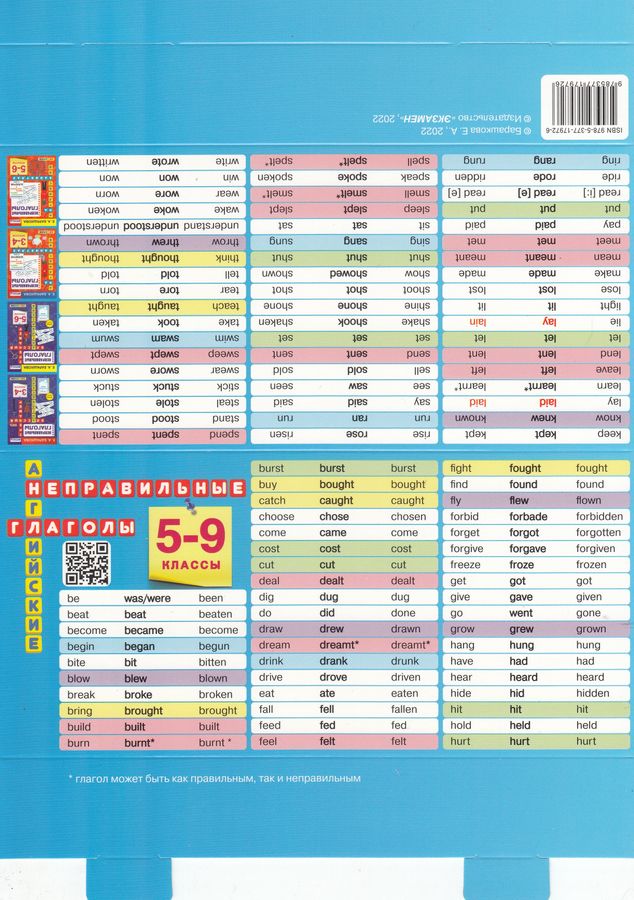 Английский язык. 5-9 класс. Неправильные глаголы. Настольная таблица-домик 2022 | Барашкова Е.А.