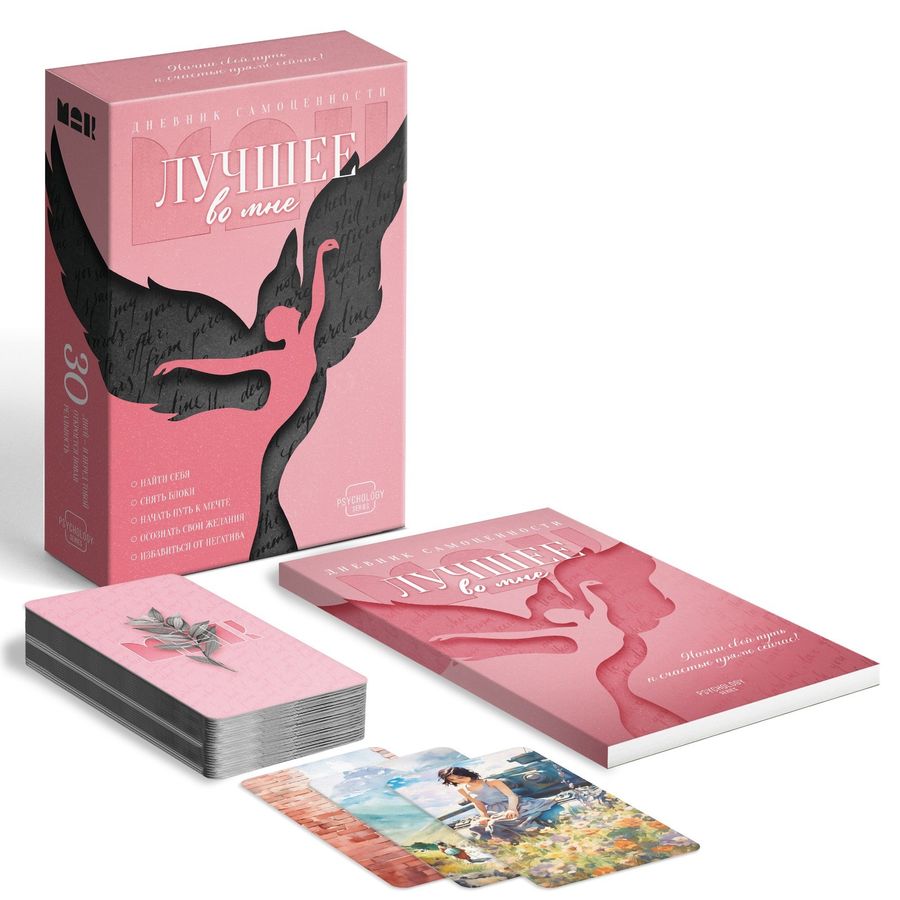 Здравствуй, дорогая! Ты держишь в руках дневник, который поможет тебе всего за 30 дней преобразить свою жизнь! В нём подробно описаны ежедневные ресурсные практики, направленные на работу с подсознанием и замену негативных установок на позитивные и жизнеутверждающие. Каждая техника – маленький шаг на пути к новому восприятию себя и мира вокруг. Всего 30 шагов - и перед тобой откроется новая реальность, наполненная счастьем и радостью. Реальность, в которой будут исполняться все твои желания и мечты. И творцом этой реальности будешь ты. А метафорические ассоциативные карты станут верными помощниками на этом пути к счастливой и осознан - ной жизни. На них запечатлены различные образы, метафоры, смыслы, через которые ты сможешь говорить со своим подсознанием и получать от него ответы на все важные вопросы. Состав: • 50 карт • Дневник самооценности