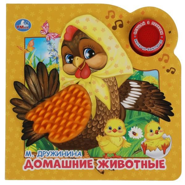 Музыкальная книга «М. Дружинина. Домашние животные» ТМ «УМка» - отличный подарок для малыша: - 1 звуковая кнопка - 3 песни на стихи Марины Дружининой - силиконовый тактильный элемент на обложке - яркие иллюстрации - удобный формат Ребёнок с удовольствием будет листать плотные картонные страницы, рассматривать красочные картинки, читать вместе с родителями интересные стихи о домашних животных, а также нажимать на кнопку и слушать весёлые песенки. Для привлечения большего внимания малыша к книге и развития его сенсорики на обложке имеется элемент из приятного на ощупь силикона. Благодаря компактному формату книгу удобно брать с собой в дорогу. Музыкальная книга ТМ «УМка» развивает: - слуховое восприятие - фантазию - образное мышление - память Объём: 8 стр. Формат: 180 х 180 мм. Материал: пластмасса + картон. Работает от 3-х батареек типа LR1130 (в комплекте). Рекомендовано детям старшего дошкольного возраста.