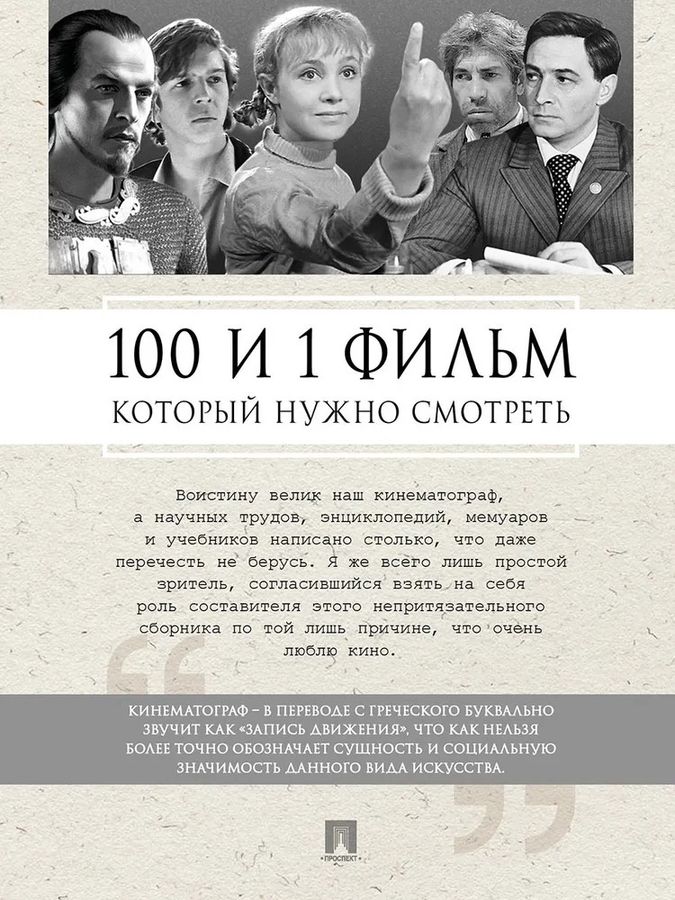 Фильмы советской эпохи неслучайно вписали золотые страницы в историю мирового кинематографа. Цель этой книги – как можно скорее превратить читателя в зрителя. Чтобы на примере лучших образцов отечественного кинематографа он смог оценить блестящую игру актеров прошлых лет, а также великолепные режиссерские и операторские работы. Почувствовать дух эпохи непредвзято, где-то улыбнувшись светлой наивности, а где-то услышать эзопов язык автора сценария. Приятного вам чтения и просмотра!