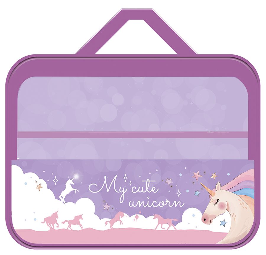 Папка на молнии вокруг для труда А4 ПТР-111 Милый единорог текстильная с ручками ПЧЕЛКА (жен)