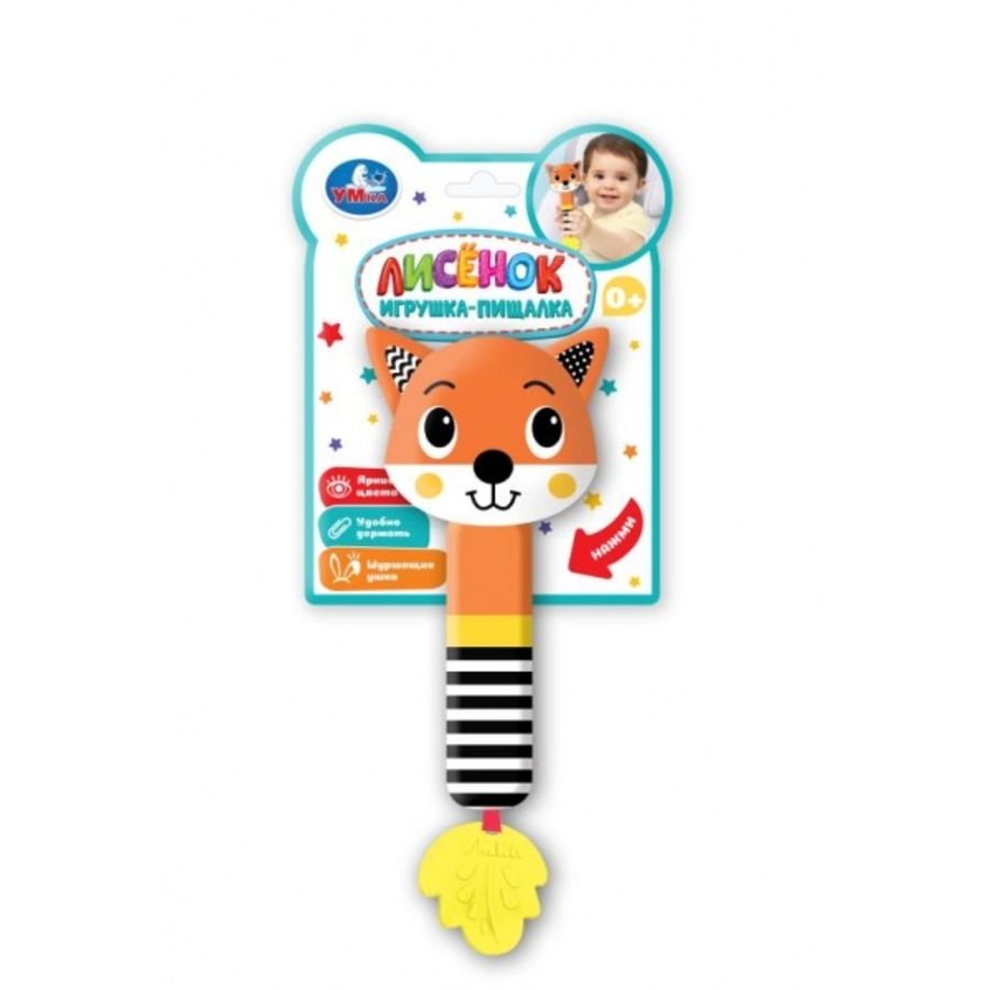 Текстильная игрушка-погремушка с пищалкой «Лиса» ТМ «УМка» разработана специально для самых маленьких: - гремящие шарики - пищалка - шуршащие ушки - яркие цвета - разнофактурные материалы - удобно держать - прорезыватель в виде листочка Эта игрушка в виде милой лисички выполнена из гипоаллергенного разнофактурного текстиля красочной расцветки. При нажатии игрушка издаёт забавный пищащий звук, а если её потрясти - весело загремят шарики, надежно спрятанные внутри. Прорезыватель интересной формы из качественного безопасного материала пригодится малышу, когда у него будут резаться зубки. Игра с игрушкой-погремушкой ТМ «УМка» развивает: - слуховое восприятие - тактильные навыки - моторику - цветовосприятие Размер: 10 х 32 х 4 см. Материал: пластмасса + текстиль. Рекомендовано детям раннего ясельного возраста.