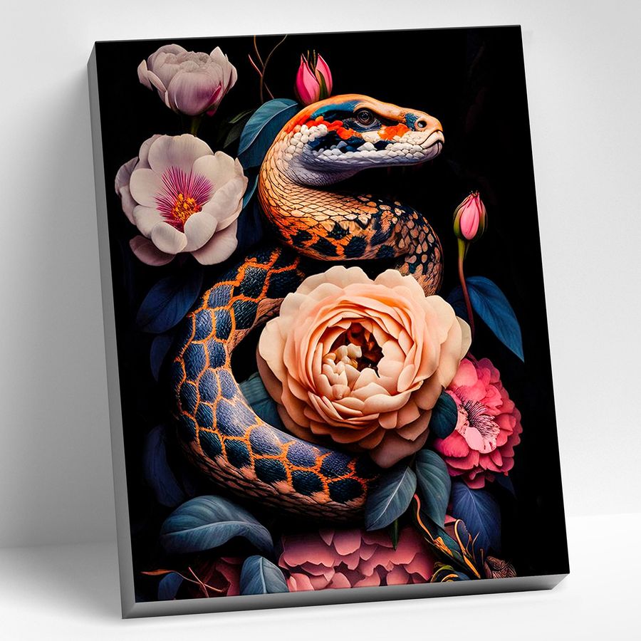 Картина по номерам 40х50 Красота змеи – это набор для творчества с помощью которого, используя краски и кисть, можно нарисовать потрясающую картину, даже не обладая художественными навыками. Количество красок: 27 Уровень сложности: 2 (легкий) Состав набора: холст из натурального хлопка на деревянном подрамнике ;холст предварительно прогрунтован, 2 нейлоновые кисти разного размера, профессиональные акриловые краски; устойчивые к выцветанию, крепления для картины.