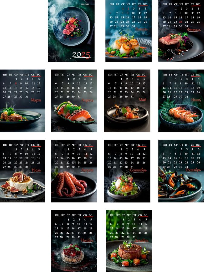Красочный отрывной календарь на магните, размер 108х145мм. Блок — мелованная бумага 130гр/м2 — 12 листов на склейке с индивидуальным дизайном на каждый месяц. Подложка — целлюлозный картон.