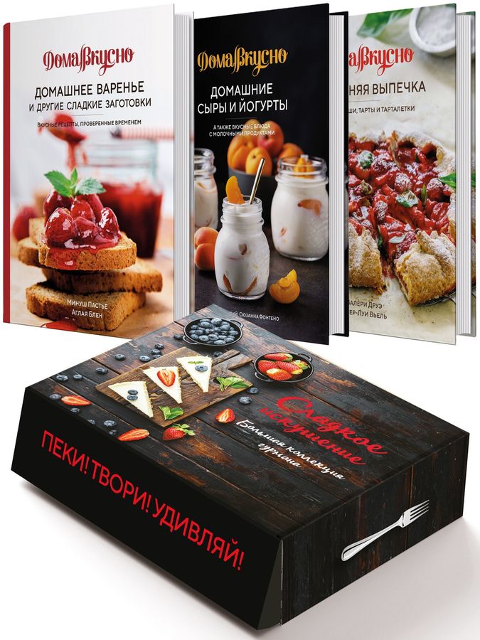 Варенье, выпечка, сыры… что их объединяет? Конечно же подарочное издание в виде комплекта в красивейшей упаковке, которую так и хочется съесть… Книги «Домашнее варенье», «Домашняя выпечка», «Домашние сыры и йогурты» – это идеальное сладкое искушение для настоящих гурманов!