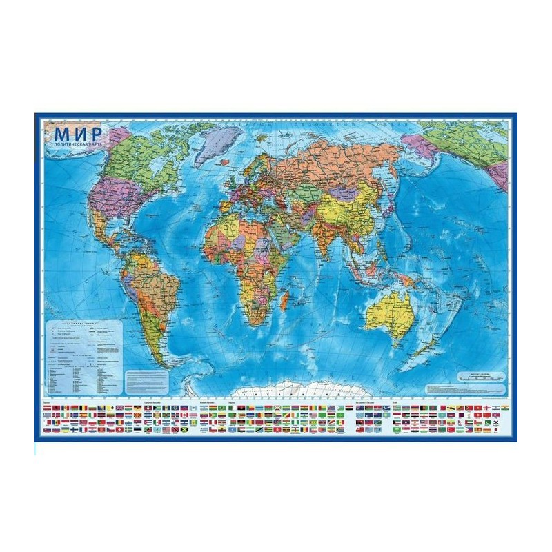 Карта Мир Политический 1:28М 117х80 с ламинацией в тубусе КН046 (2017)
