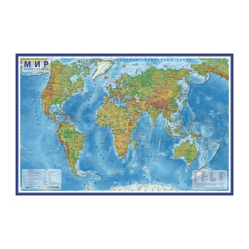 Карта Мир Физический 1:25М 120х78 с ламинацией в тубусе КН049 ()