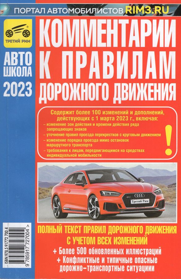 Издание содержит подробные и хорошо иллюстрированные комментарии к Правилам дорожного дорожного движения. Учтены все изменения и дополнения, введенные в действие с 1 марта 2023 г. В книге содержится более 500 обновленных цветных иллюстраций, помогающих лучше усвоить учебный материал. Книга предназначена для слушателей автошкол, а также людей, желающих самостоятельно изучить Правила дорожного движения, дорожные знаки, дорожную разметку и Основные положения по допуску транспортных средств к эксплуатации. Также приведены необходимые для водителей сведения из Технического регламента Таможенного союза «О безопасности колесных транспортных средств». Кроме того, в издании рассмотрены и проиллюстрированы конфликтные ситуации на дорогах, позволяющие начинающим водителям научиться прогнозировать возможные опасности и избегать их. Синим цветом выделен официальный текст ПДД РФ.