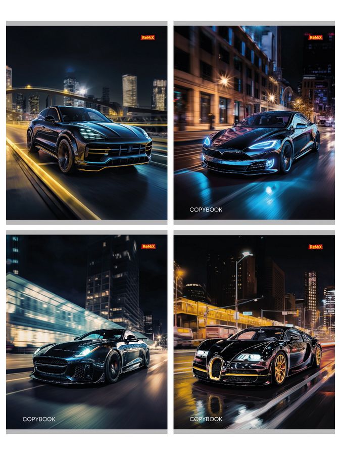 Тетрадь А5 36л клетка скрепка мелов.картон Ночной автомобиль ассорти Remix 36-5765