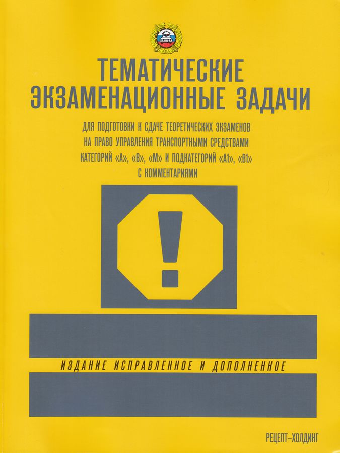 Настоящее пособие является изданием комплекта экзаменационных задач, утвержденных Главным государственным инспектором безопасности дорожного движения Российской Федерации, которые используются при приеме теоретических экзаменов на право управления транспортными средствами категорий «А», «В», «М» и. подкатегорий «А1», «В1» в подразделениях Государственной инспекции безопасности дорожного движения. Категория «А» — мотоциклы. Категория «В» - автомобили, разрешенная максимальная масса которых не превышает 3,5 т и число сидячих мест которых, помимо сиденья водителя, не превышает восьми. Категория «М» -— мопеды и легкие квадроциклы. Подкатегория «А1» - мотоциклы с рабочим объемом двигателя внутреннего сгорания, не превышающим 125 см3, и максимальной мощностью, не превышающей 11 квт. Подкатегория «В1» - трициклы и квадроциклы. Вопросы, включенные в экзаменационные задачи, позволяют проверить знания: — Правил дорожного движения Российской Федерации; -Основных положений по допуску транспортных средств к эксплуатации и обязанностей должностных лиц по обеспечению безопасности дорожного движения; -законодательства Российской Федерации в части, касающейся обеспечения безопасности дорожного движения, а также уголовной, административной и гражданской ответственности водителей транспортных средств; — основ безопасного управления транспортным средством; — порядка оказания первой помощи лицам, пострадавшим при дорожно-транспортном происшествии. Экзаменационные задачи сгруппированы в тематические разделы. Это облегчает изучение вопросов, знание которых необходимо не только для успешной сдачи теоретического экзамена, но, и для безопасного управления транспортными средствами. : Подробные объяснения правильных решений экзаменационных задач содержатся в Комментариях к тематическим экзаменационным задачам, расположенных в конце настоящего издания. В Тематические экзаменационные задачи для подготовки к сдаче теоретических экзаменов на право управления транспортными средствами категорий «А», «В», «М» и подкатегорий «А1», «В1» внесены изменения и дополнения. Переработанные тексты тематических задач используются при приеме экзаменов на право управления транспортными средствами.