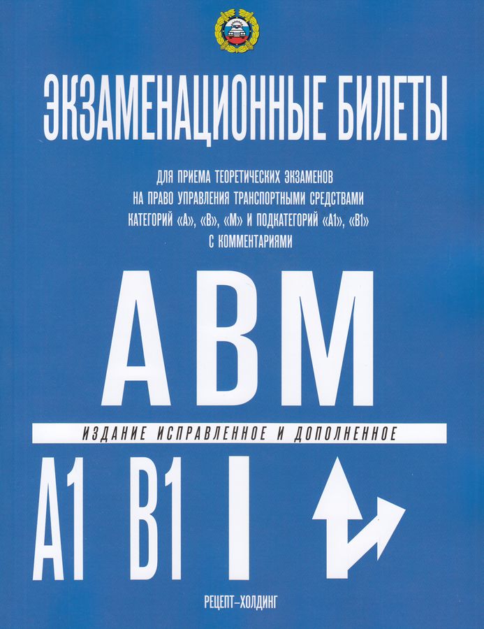 Настоящее пособие является официальным изданием экзаменационных билетов, которые используются при приеме теоретических экзаменов на право управления транспортными средствами категорий «А», «В», «М» и подкатегорий «А1», «В1» в подразделениях Государственной инспекции безопасности дорожного движе- ния. Категория «А» — мотоциклы. Категория «В» - автомобили с разрешенной максимальной массой, не превышающей 3,5 т, в которых число сидячих мест, помимо сиденья водителя, не более восьми. : Категория «М» - мопеды и легкие квадрициклы. Подкатегория «А1» - мотоциклы с рабочим объемом двигателя внутреннего сгорания, не превышающим 125 см3, и максимальной мощностью, не более 11 квт. Подкатегория «В1» - трициклы и квадрициклы. Вопросы, включенные в экзаменационные билеты, позволяют проверить знания: — Правил дорожного движения Российской Федерации; _— Основных положений по допуску транспортных средств к эксплуатации и обязанностей должностных лиц по обеспечению безопасности дорожного движения; — законодательства Российской Федерации в части, касающейся обеспечения безопасности дорожного движения, а также уголовной, административной и гражданской ответственности водителей транспортных средств; — основ безопасного управления транспортным средством; - — порядка оказания первой помощи лицам, пострадавшим при дорожно-транспортном происшествии. Экзаменационный билет состоит из четырех тематических блоков, каждый из которых содержит пять задач. При проведении экзаменов в ГИБДД используются различные варианты компоновки билетов. Имеется в виду, что экзаменуемому предлагается решить первые пять задач из одного билета, вторые пять задач из другого билета и т.д. Подробные объяснения правильных решений экзаменационных задач содержатся в комментариях к экзаменационным билетам, расположенных после каждого билета. В Экзаменационные билеты для приема теоретических экзаменов на право управления транспортными средствами категорий «А», «В», «М» и подкатегорий «А1», «В1> внесены изменения и дополнения. Переработанные тексты экзаменационных билетов используются при приеме экзаменов на право управления транспортными средствами.