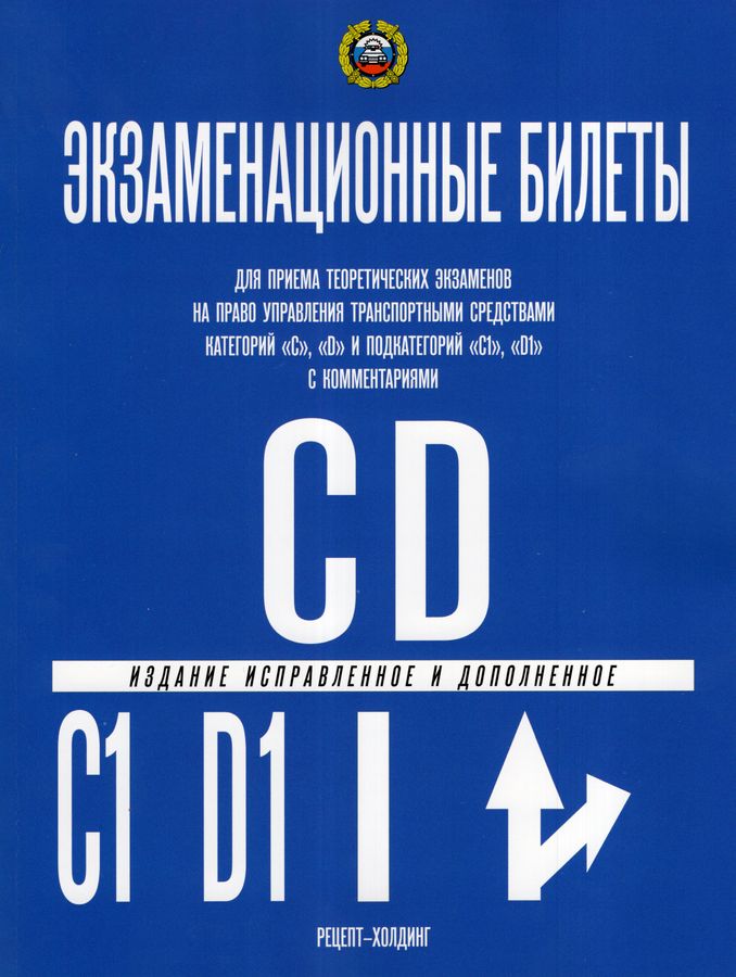 Настоящее пособие является официальным изданием экзаменационных билетов, которые используются при приеме теоретических экзаменов на право управления транспортными средствами категорий «С», «D» и подкатегорий «С1», «D1» в подразделениях Государственной инспекции безопасности дорожного движения. Категория «С» - автомобили, за исключением автомобилей категории «О», разрешенная максимальная масса которых превышает 3,5 т. Категория «D» - автомобили, предназначенные для перевозки пассажиров и имеющие более восьми сидячих мест, помимо сиденья водителя. Подкатегория «С1» - автомобили, за исключением автомобилей категории «О», разрешенная максимальная масса которых превышает 3,5 т, но не превышает 7,5 т. Подкатегория «D1» - автомобили, предназначенные для перевозки пассажиров и имеющие более восьми, но не более шестнадцати сидячих мест, помимо сиденья водителя. Вопросы, включенные в экзаменационные билеты, позволяют проверить знания: — Правил дорожного движения Российской Федерации; — Основных положений по допуску транспортных средств к эксплуатации и обязанностей должностных лиц по обеспечению безопасности дорожного движения; — законодательства Российской Федерации в части, касающейся обеспечения безопасности дорожного движения, а также уголовной, административной и гражданской ответственности водителей транспортных средств; — основ безопасного управления транспортным средством; — порядка оказания первой помощи лицам, пострадавшим при дорожно-транспортном происшествии. Экзаменационный билет состоит из четырех тематических блоков, каждый из которых содержит пять задач. При проведении экзаменов в ГИБДД используются различные варианты компоновки билетов. Имеется в виду, что экзаменуемому предлагается решить первые пять задач из одного билета, вторые пять задач из другого билета и т.д. Подробные объяснения правильных решений экзаменационных задач содержатся в комментариях к экзаменационным билетам, расположенных после каждого билета. В Экзаменационные билеты для приема теоретических экзаменов на право управления транспортными средствами категорий «С», «D» и подкатегорий «С1», «D1» внесены изменения и дополнения. Переработанные тексты экзаменационных билетов используются при приеме экзаменов на право управления транспортными средствами.